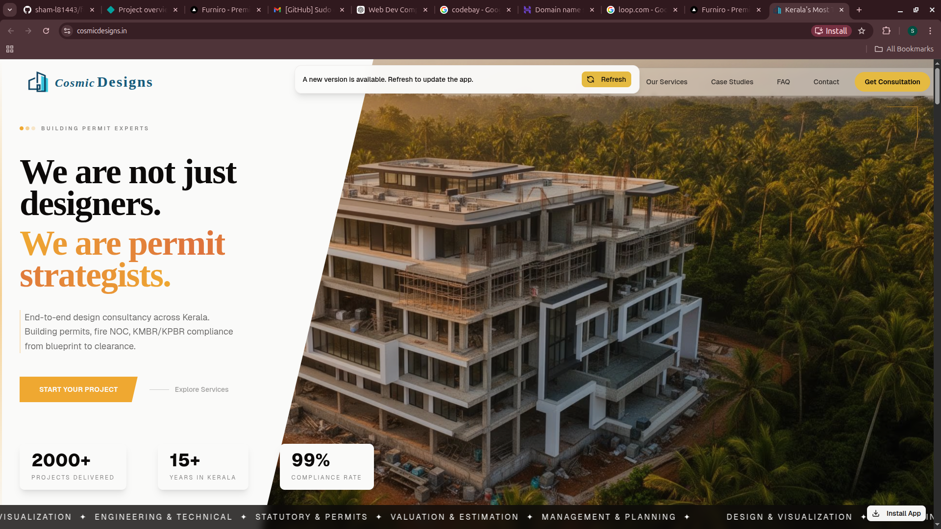 A premium marketing website for an architecture firm, featuring full-screen image transitions and elegant typography.