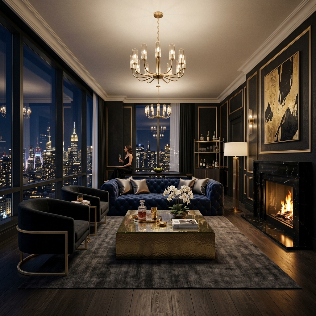 A sophisticated furniture store showing minimalist interiors with seamless cart management and product previews.